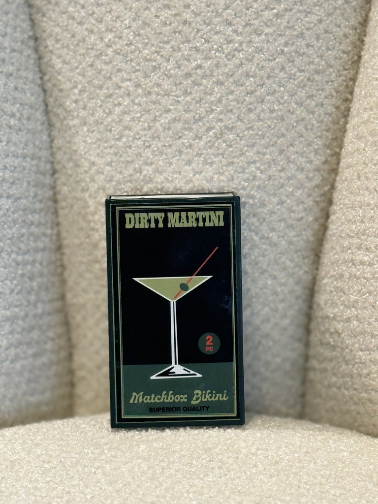 Introducing "Dirty Martini" – the ultimate cocktail-inspired city bikini with a daring twist. This sleek black bikini, accented by olive strings, channels the sophisticated allure of its namesake cocktail. This bikini is slightly different to our usual style, with ruched bottoms and slightly smaller cups, it's as bold and tantalising as the classic drink itself.