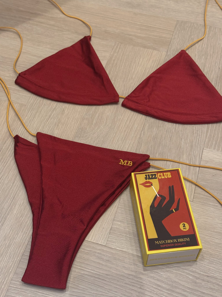 Meet Jazz Club – a sultry dark red bikini with bold mustard yellow strings, inspired by the moody elegance and effortless cool of late-night jazz bars. Featuring a refined new ruffle cup design, this bikini captures the rhythm and allure of an evening steeped in music and style.