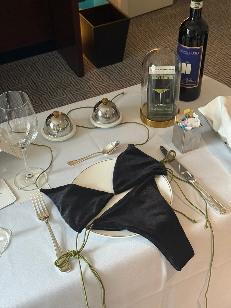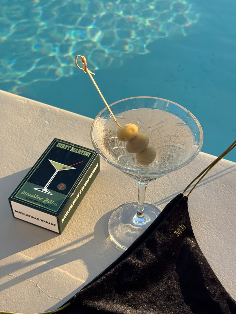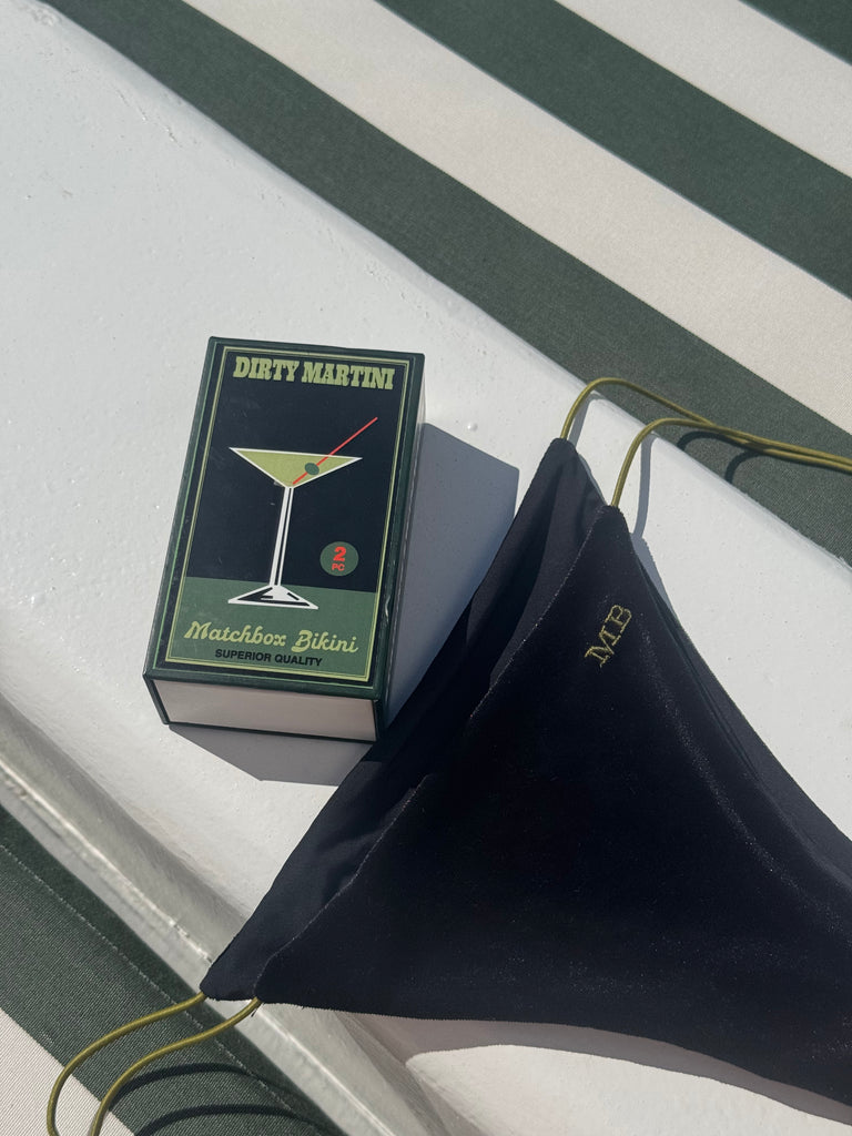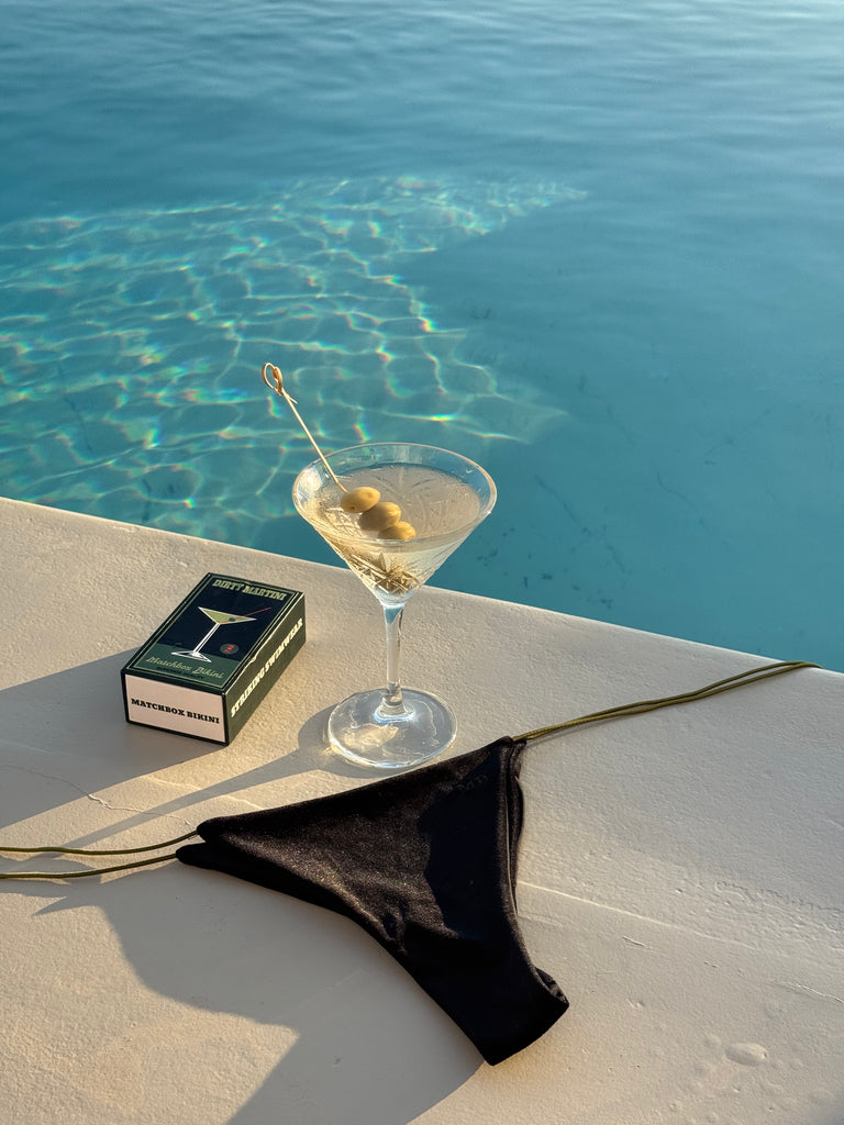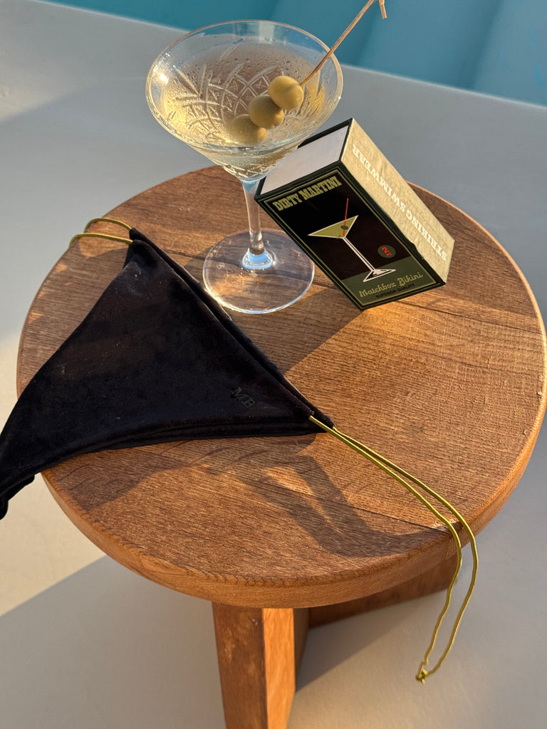 In classic black with olive string ties, Dirty Martini channels the sultry elegance of its namesake drink — equal parts daring, sophisticated, and unapologetically hot.