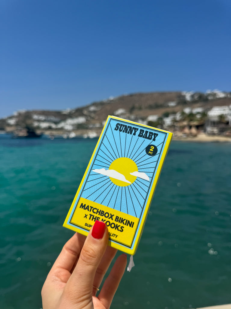 Introducing "Sunny Baby" – a collaboration with The Kooks that radiates pure summer joy. This light blue bikini with golden yellow strings captures the warmth and freedom of sun-soaked days and good vibes.